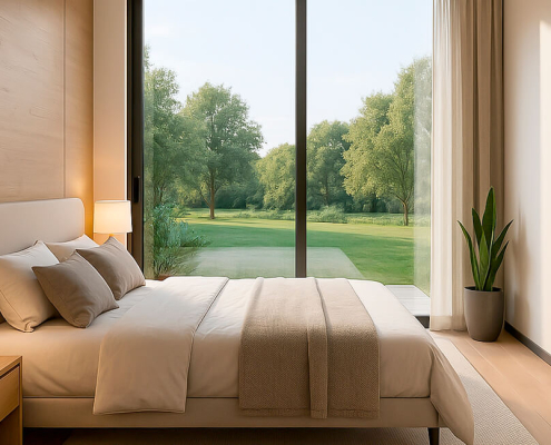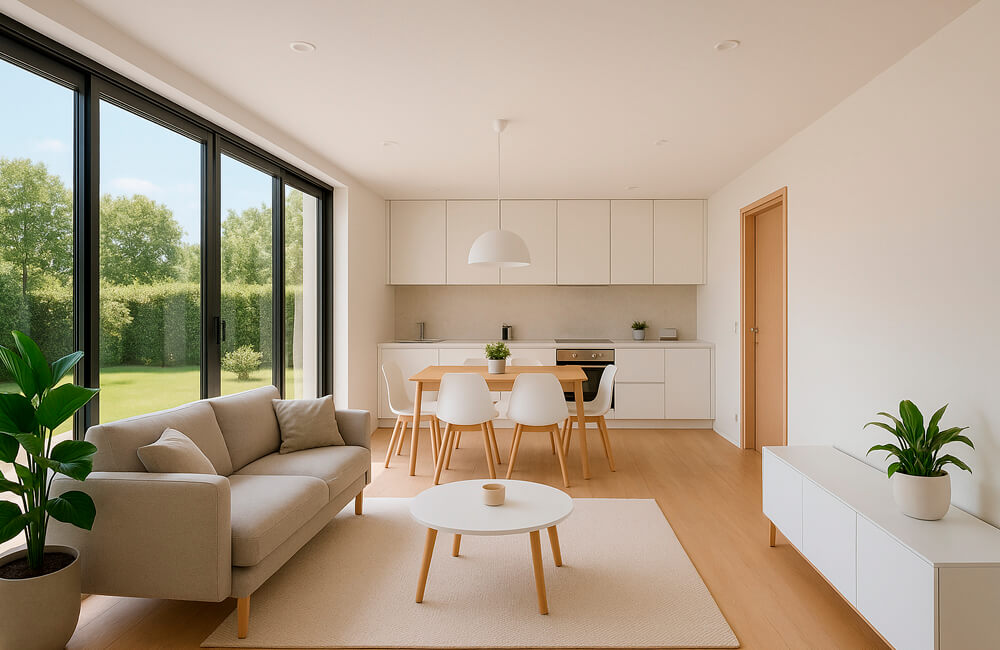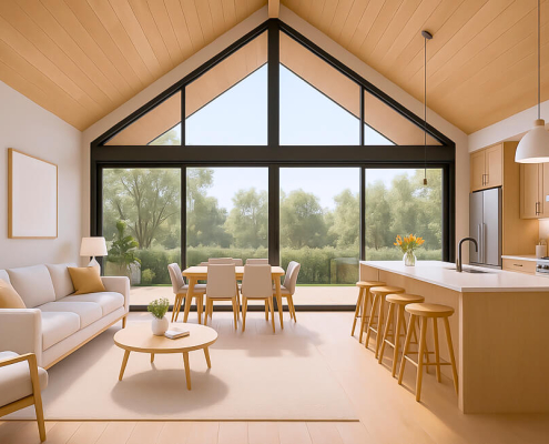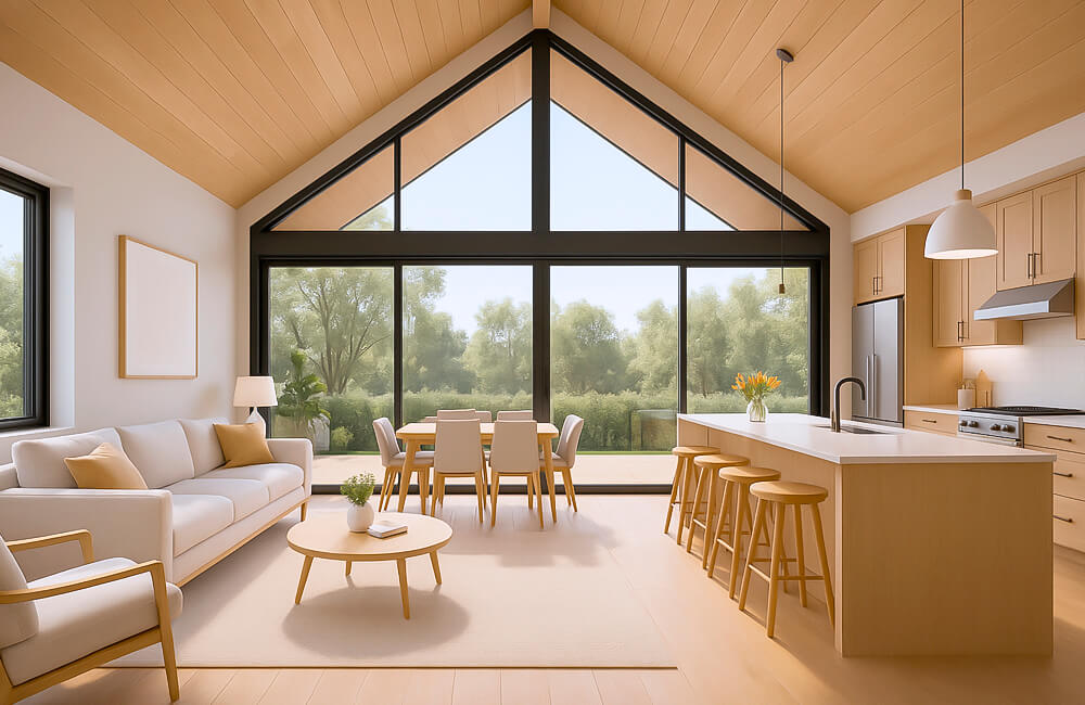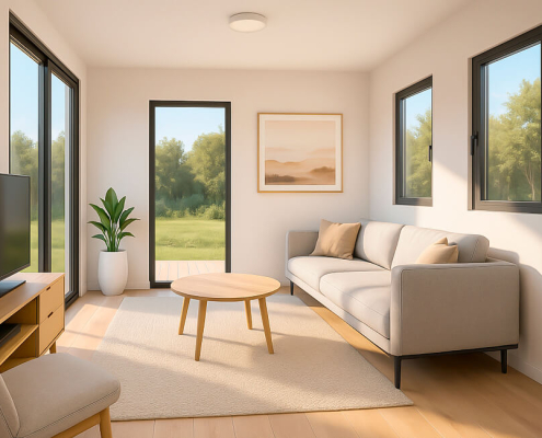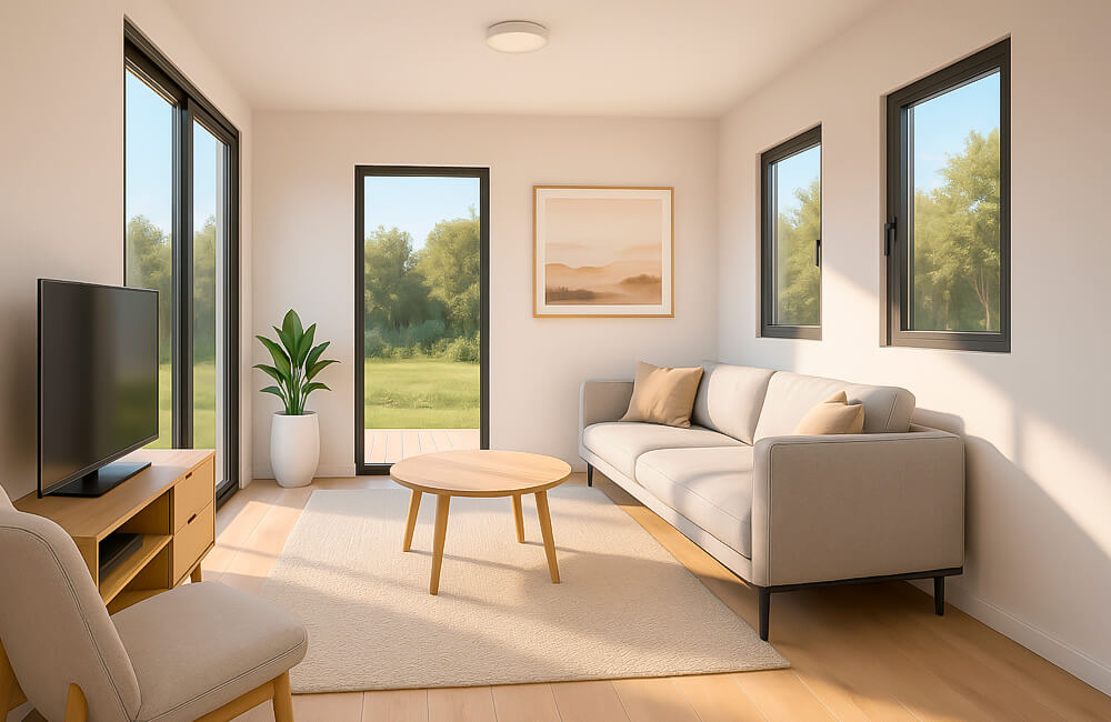 Su diseño prioriza la iluminación y ventilación natural gracias a una amplia mampara de vidrio templado que conecta el interior con la terraza. Confort y funcionalidad para hasta 6 personas, sino que además permite futuras ampliaciones, adaptándose a las necesidades de sus habitantes y demostrando el potencial de la arquitectura modular moderna.